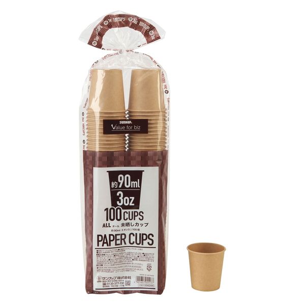 サンナップ オール未晒しカップ 90ml 100個入 C90100MZAW 1パック