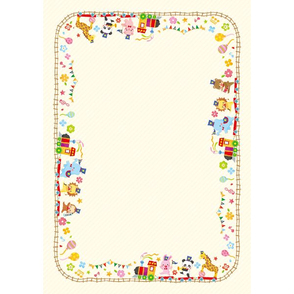 可愛い動物たちがパレードをしているキッズ向きのデザイン証書。幼稚園・保育園で賞状や卒園証書、感謝状、運動会や皆勤賞の表彰状などにも使用できます。