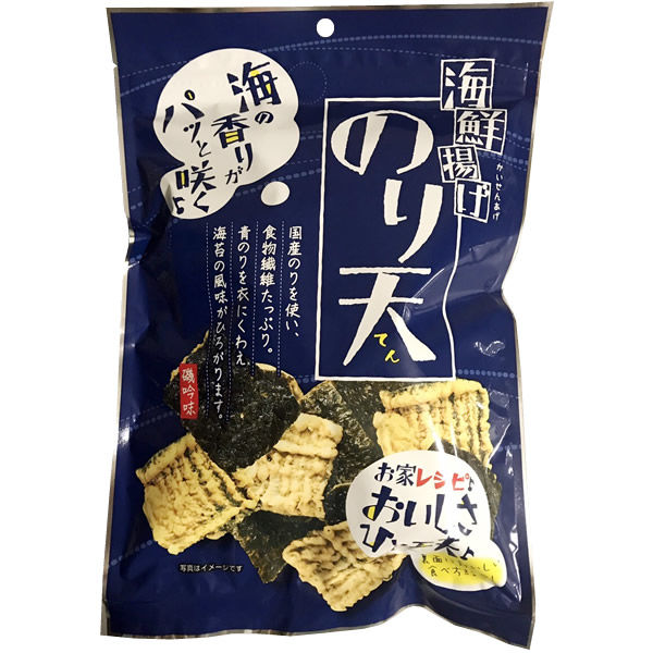 | 商品の特徴 | 国産「青のり」を衣に加え、甘味・辛味を抑え、海苔の風味豊かに仕上げました。食物繊維をたっぷり含んでいます。100%植物油でサクサクに揚げました。ビールやお酒のおつまみとして最適です。お子様のおやつとしてお召しあがりいただけます。簡単ひと手間で、家飲みおつまみとしてもご使用いただけます。保存に便利なチャック付き袋で、簡単な家飲みレシピが付いてます。 | ||