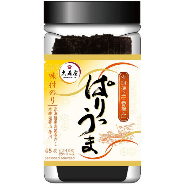 九州有明海産一番摘み海苔が香りが良く、ご飯を巻くときもぱりぱりなのに、口どけがよくて味付けが絶妙です!!大森屋の中で一番おいしいと思いますが、量が少なくて高いのが惜しいです!!