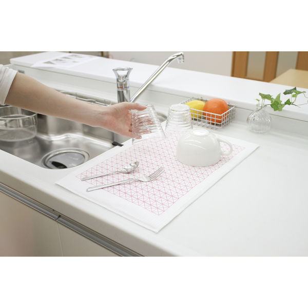 | 商品の特徴 | 食器乾燥機に入らないお鍋や、ちょっとした洗い物のときに大活躍!表のマイクロファイバー生地で水分をサッと吸水。純銀の抗菌糸「ミューファン」を使用しており、純銀から放出される銀イオンが菌の繁殖を抑え、臭いの発生を防ぎ衛生的。 | ||