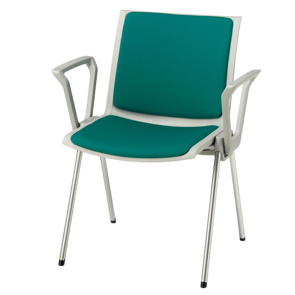 ライオン事務器 スタッキングチェア No.676F 布張り 肘付 グリーン 1脚(直送品)