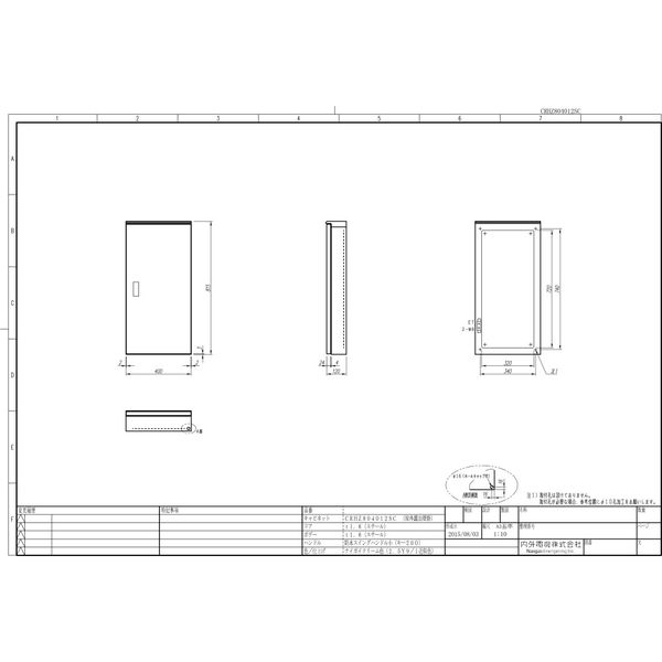 | ドア | 片開 | 色(マンセル値) | クリーム色(2.5Y9/1) |