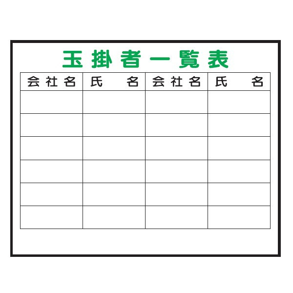 | 商品の特徴 | ●WP3●玉掛者一覧表 | ||