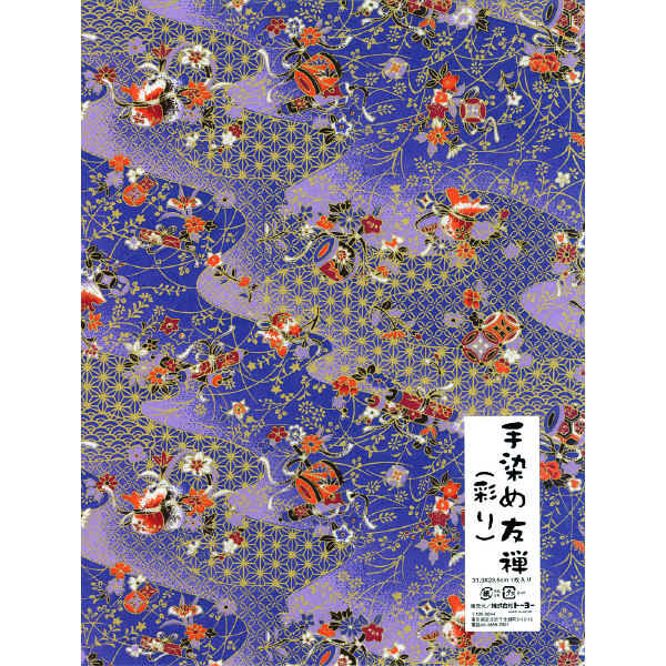 あざやかな彩りの、発色が綺麗な友禅柄和紙です。和風小物や和紙人形の制作など幅広い用途にご使用いただけます。