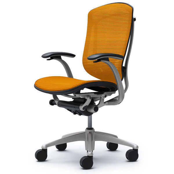 CM21SB FGH1 |オカムラ コンテッサ オフィスチェア スタンダードタイプ 固定肘 背座メッシュ シルバー×ネオブラック マンゴーイエロー(直送品)