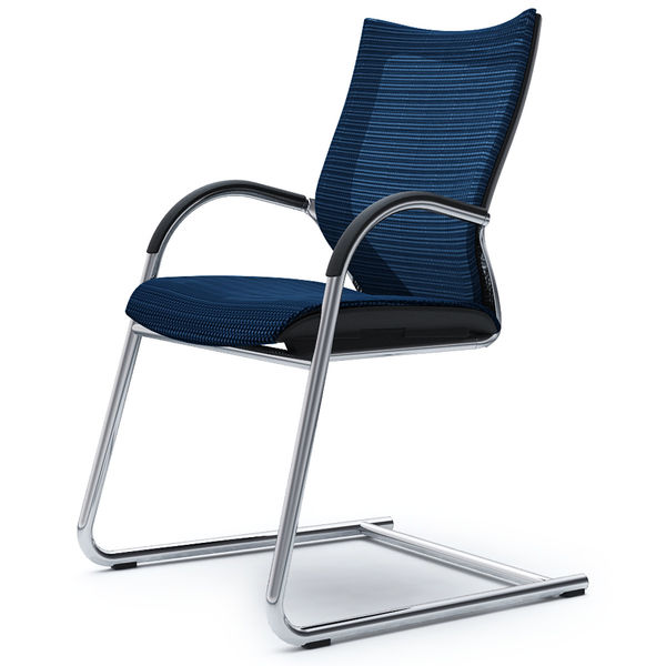 バロンゲストチェア 固定肘 背・座スタンダード クロームメッキ×ブラック ミディアムブルー CP72AR FEH4(直送品)