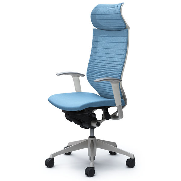 CP87DW FGR4 バロン チェア EXハイバック 固定ヘッドレスト 可動肘 背サポートメッシュ座クッション シルバー×ホワイト アクアブルー(直送品)