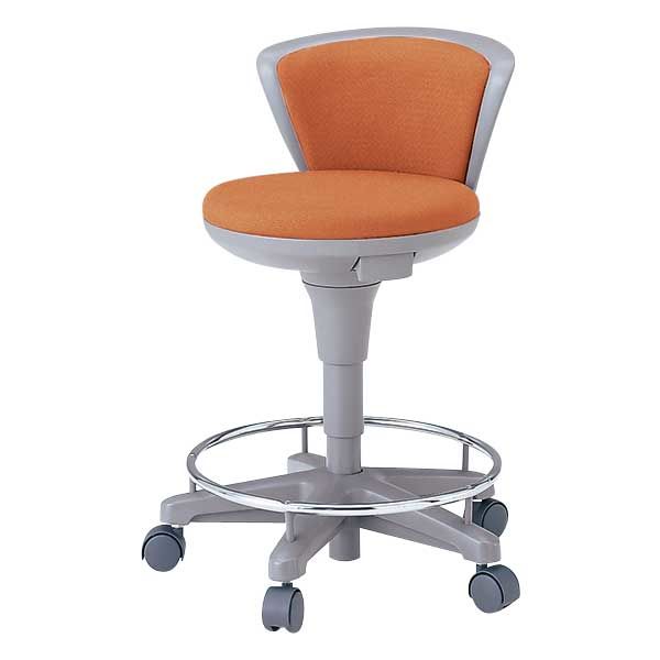 【設置込】イトーキ サポートスツール2 足掛付 肘なし 背付 ナイロン双輪キャスター 座面回転 グレー/ソフトオレンジ KSK-170DF-D7(直送品)