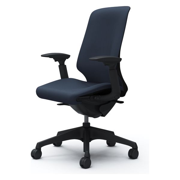 オカムラ スフィア ハイバック ハンガー無 可動肘 ナイロンキャスター 張地リネット 黒×ダークブルー CT4AAA FRU4 1脚(直送品)