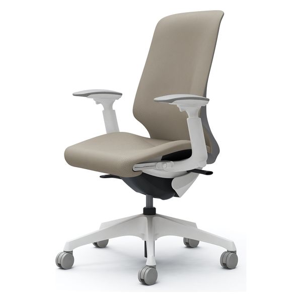 オカムラ スフィア ハイバック ハンガー無 可動肘 ナイロンキャスター 張地リネット 白×ベージュ CT4AAC FRU7 1脚(直送品)