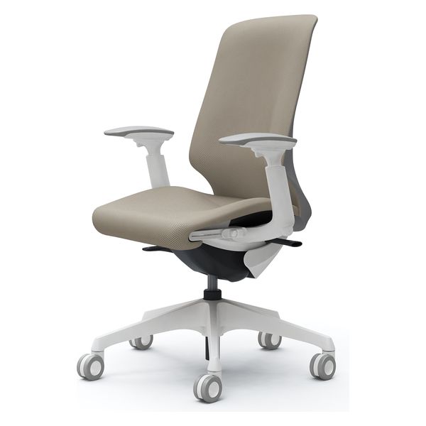 オカムラ スフィア ハイバック ハンガー無 可動肘 ウレタンキャスター 張地リネット 白×ベージュ CT4AFC FRU7 1脚(直送品)