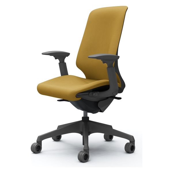オカムラ スフィア ハイバック ハンガー無 可動肘 ウレタンキャスター 張地リネット 灰×イエロー CT4AFE FRU8 1脚(直送品)