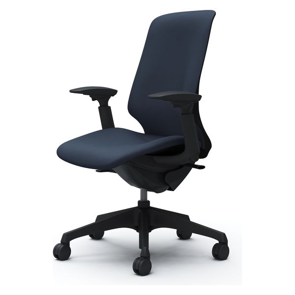 オカムラ スフィア ハイバック ハンガー無 可動肘 ナイロンキャスター 張地リネット 黒×ダークブルー CT4CAA FRU4 1脚(直送品)
