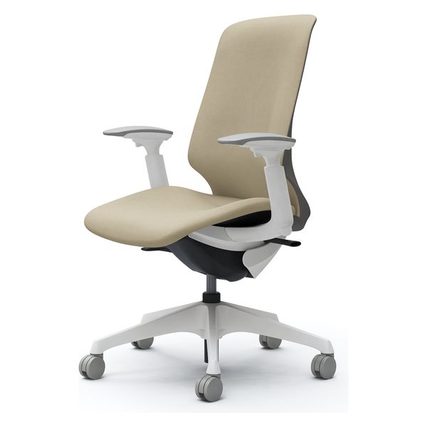 オカムラ スフィア ハイバック ハンガー無 可動肘 ナイロンキャスター 張地インターロック 白×ベージュ CT4CAC FXW2 1脚(直送品)