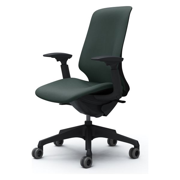 オカムラ スフィア ハイバック ハンガー無 可動肘 ウレタンキャスター 張地リネット 黒×ダークグリーン CT4CFA FRU5 1脚(直送品)