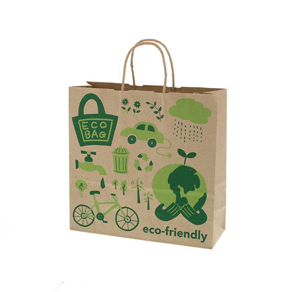 | 商品の特徴 | 環境をテーマにデザインされ、再生紙を使用した環境に優しい手提げ紙袋です。幅と高さがほぼ正方形のオールマイティモデル。●手紐:丸紐未晒●入数:50枚 | ||