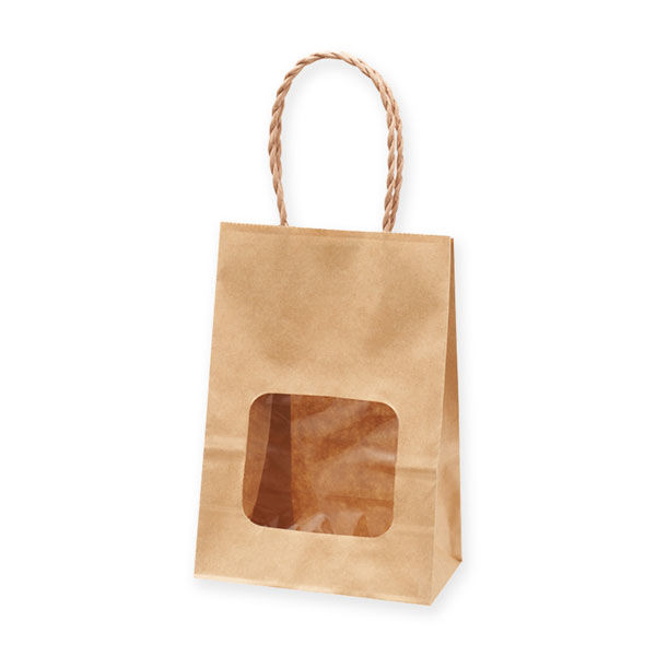 | 商品の特徴 | 窓にフィルムがついている小さな手提げ袋。中が見えるかわいいサイズが人気です。ナチュラルテイストの茶無地シリーズは焼き菓子はもちろん、おせんべいやナッツ・ドライフルーツなど洋菓子・和菓子問わずいろいろなご用途にお使いいただけます。持ち手は紙2本撚り紐クラフトを採用しています。シールやスタンプでアレンジすればオリジナルラッピングに。※食品を入れる際には個包装してからご利用ください。 | ||