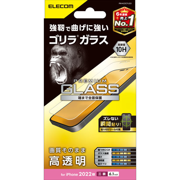 iPhone14 Pro ガラスフィルム 高透明 強化ガラス ゴリラ 薄型 エレコム 1個