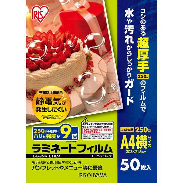 アイリスオーヤマ ラミネートフィルム A4 250μ 1箱(50枚入)(わけあり品)