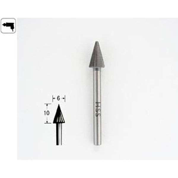 | 商品の特徴 | 加工材の材質と形状、加工条件に合わせてお選び下さい。カッター目:粗く削れますが、薄い部分や弱い所、木目に逆らった加工は割れが入ることがあります。仕上がり面はきれいです。 直径×長さ:6×10mm 許容最大回転数:30,000 min-1(rpm) 詳細: HSS材 | ||