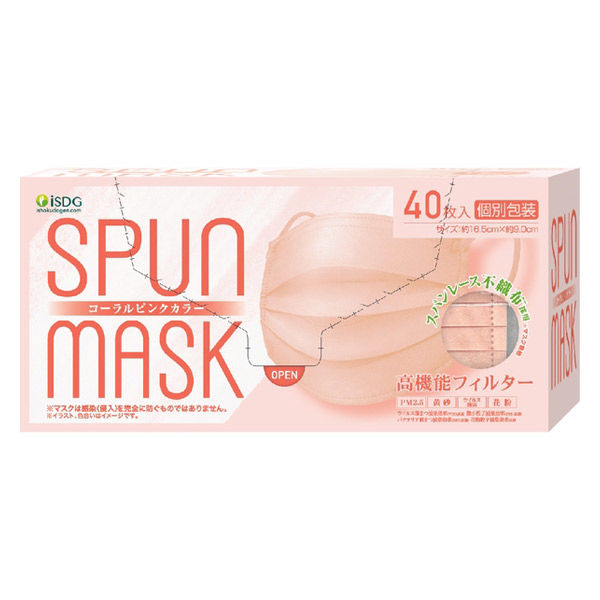 SPUN MASK スパンレース 不織布 (コーラルピンク)1箱(40枚入) 医食同源ドットコム 個包装 使い捨て カラーマスク