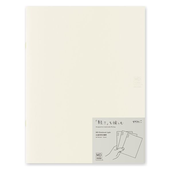 | 商品の特徴 | 「書く」を愉しむことを追求した『MDノート』を、薄く持ち歩きしやすくしたのが『MDノート ライト』です。いつものカバンに忍ばせておき、ちょっとした気づきやひらめきが浮かんだら、さっと取り出して書き留めましょう。罫幅7mmの横罫ノートの3冊組となります。 | ||