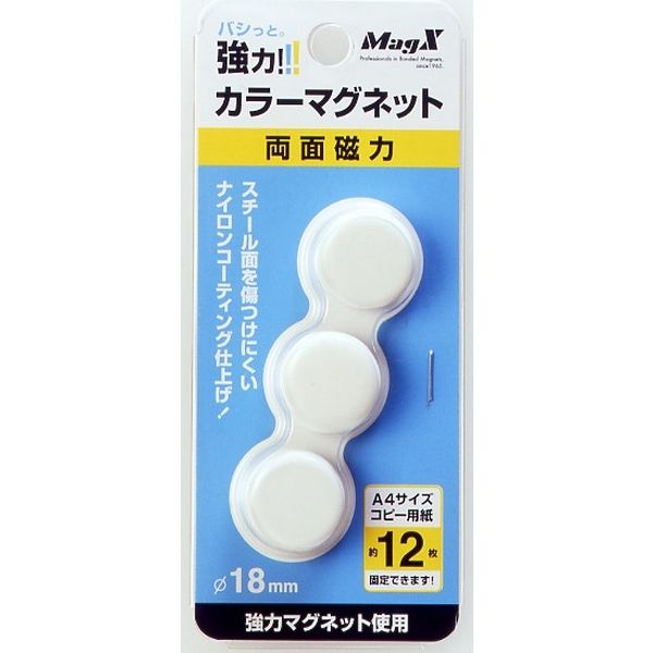 マグエックス 強力カラーマグネット 18mm 3P 白 MFCM-18-3P-W 1パック