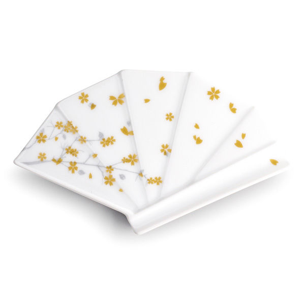 日本の季節を表す「春夏秋冬」。釉薬の上下に絵付けを施す「染綿」と呼ばれる技法を用いて、扇の平面に奥行のある、美しい日本の四季の風景を表現しました。