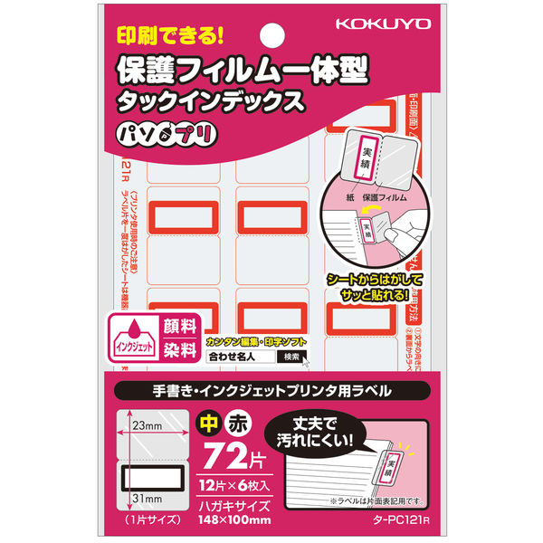 コクヨ タックインデックス<パソプリ>(保護フィルム一体型) タ-PC121R 1パック(72片入)