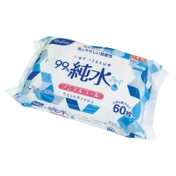 | 商品の特徴 | 99%純水ノンアルコールウエットティッシュ60枚。ふんわりソフトで肌にやさしい弱酸性。 | ||