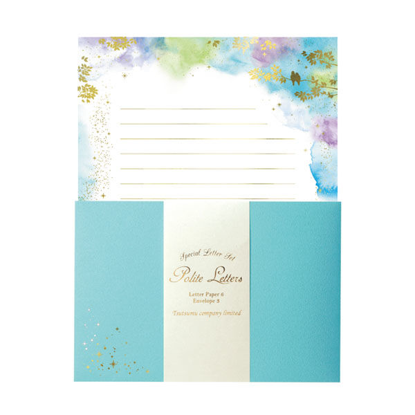 | 商品の特徴 | 水彩の繊細なデザインに金箔を施したレターセット。封筒にはキラッと輝く金箔のワンポイントをあしらっています。便箋の罫線にも箔押しを施し、華やかで上品な雰囲気です。封筒は定形内で郵送可能なサイズです。 | ||