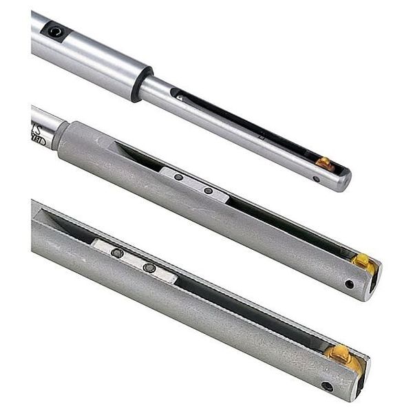 | 商品特徴 | ●丸駒状のブレードと板バネによるシンプルな自動駆動機構で、曲面穴に沿って追従します。●主軸は常に正転したまま、送りだけのプログラムで良いので、とても使いやすいツールです。 | ||