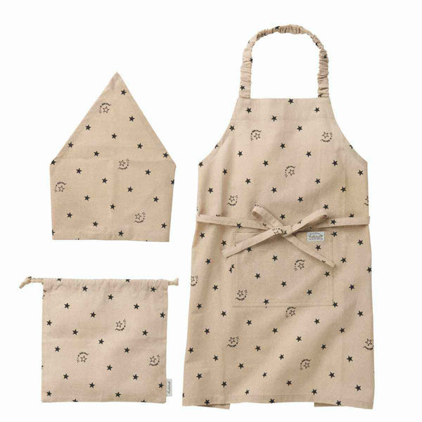 レップ エプロン キッズ 3点セット 綿100% ポケット付き ケイト 星柄 ベージュ 381316 1個(直送品)