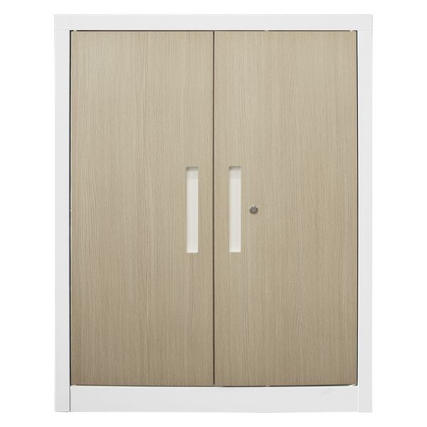 スマイル スチールストレージ(幅800mm) 2段 両開き ライトオーク木目(鍵付・シリンダー錠)幅800×奥行350×高さ772mm1台スチール書庫(取寄品)