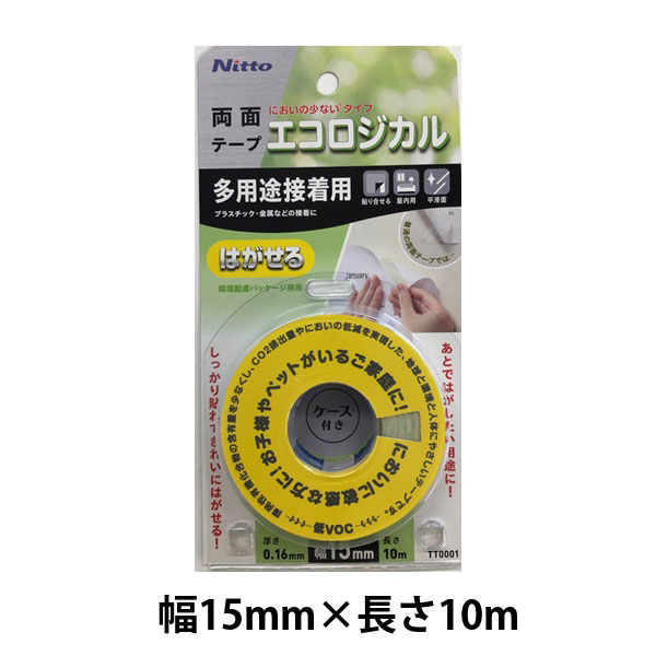 ニトムズ エコロジカル はがせる両面テープ 多用途接着用 幅15mm×長さ10m TT0001 1巻