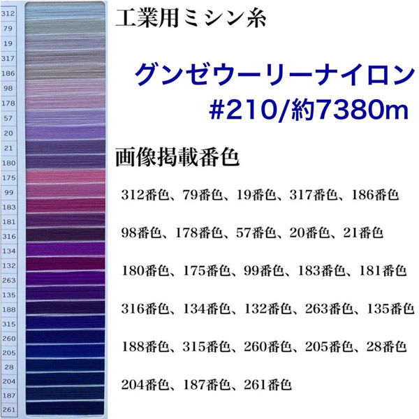 シリーズ名 工業用ミシン糸 グンゼウーリーナイロン#210(高伸縮) 質量 0.230kg