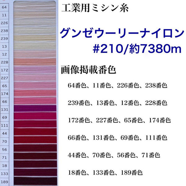 | シリーズ名 | 工業用ミシン糸 グンゼウーリーナイロン#210(高伸縮) | 内容量 | 約7380m巻き |