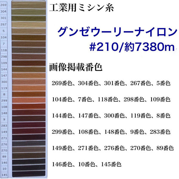 | シリーズ名 | 工業用ミシン糸 グンゼウーリーナイロン#210(高伸縮) | カラー | 301番色 |