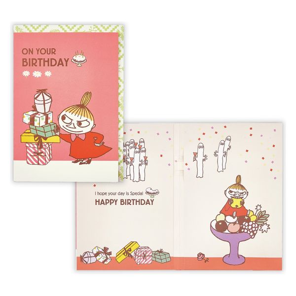 | 商品の特徴 | プレゼントとミイが誕生日を盛り上げてくれるキュートな二つ折りオルゴールカード。カードを開くとメロディーが流れる、二つ折りのオルゴールカード。パーティー気分のミイとニョロニョロが可愛らしいバースデーカードです。cMoomin Characters(TM) | ||