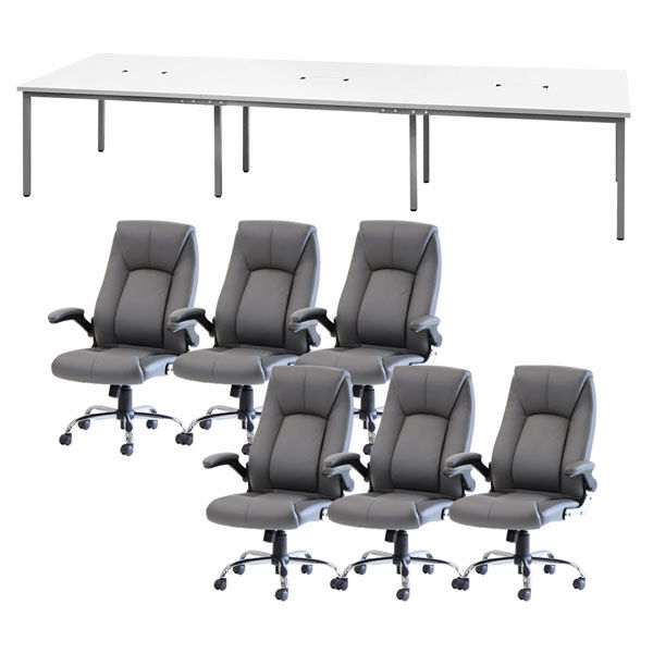 ネットフォース GOOLOO フリーアドレスデスクチェアセット 6人用 GFA-3612H-S1-WH-GY 1セット(7点入)(直送品)
