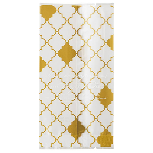 冷凍対応・脱酸素剤対応のガス袋です。ゴールドがアクセントになったヨーロピアンタイルのデザインがお菓子を上品に見せます