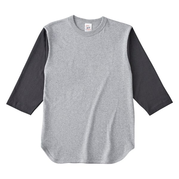 オープンエンド 七分袖 ベースボールTシャツ ヘザーグレー×スミクロ XXL 作業着 無地 ユニフォーム 野球 OE1230 1枚(直送品)