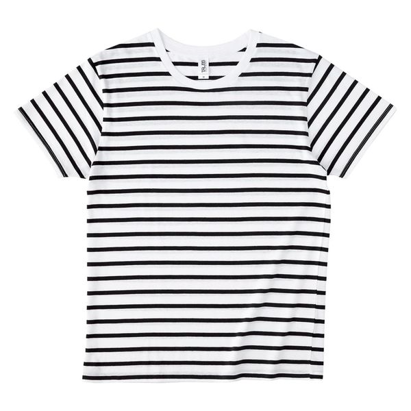 | 商品の特徴 | クリアな印象を与える細めボーダーTシャツ。・細かいボーダー: 8mm×20mm間隔のナローボーダーパターンが、洗練されたデザインを実現。・素材: コーマ糸を使用した綿100%で、柔らかく快適な着心地。・重量と厚み: 145g/m2の重量と4.3ozの生地厚で、軽やかでありながら耐久性も兼ね備えています。※ボーダーピッチ8mm×20mm間隔 | ||