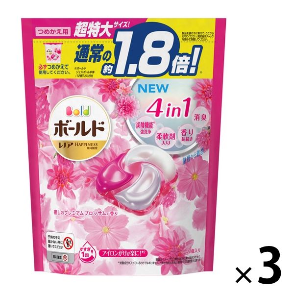 【セール】【数量限定】【旧品】ボールド ジェルボール4D 癒しのプレミアムブロッサム 詰替 超特大 1セット(22粒入×3個) 洗濯洗剤 P&G