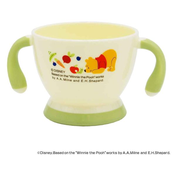 | 商品の特徴 | 持ち手が手前に曲がっているので小さなお子様にも持ちやすいです。底が大き目なので安定して置けます。持ち手と底部分は滑りにくいソフト素材になっています。可愛いプーさんと一緒なのでお食事の時間がより楽しくなりそうです。同シリーズの食器同士を重ねてもかさばりにくいのでコンパクトな収納が可能です。 | ||