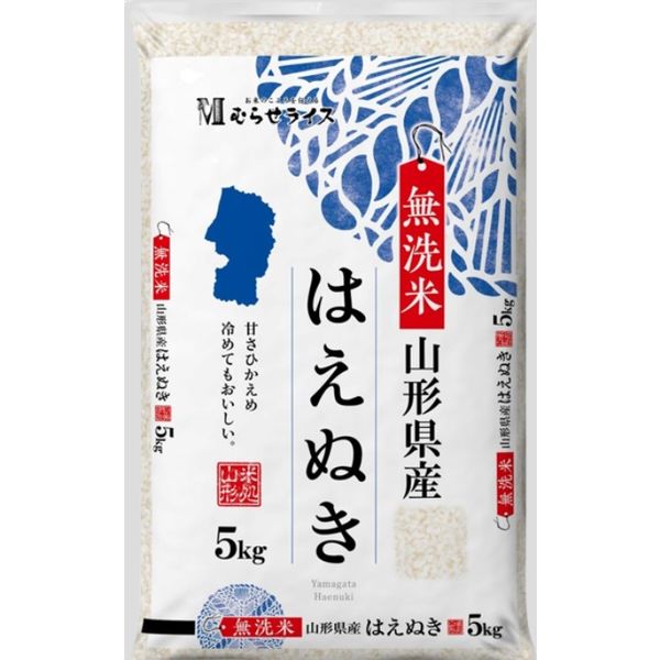 | 原料原産地 | 山形県 | 商品の特徴(2) | 豊富な日照時間と昼夜の気温差の下で生まれた山形県のオリジナル品種です。「コシヒカリ」や「ササニシキ」「あきたこまち」などのおいしさを受け継いでおり、歯ごたえよく粒揃い、噛むほどに広がる独特の甘みがあります。1粒1粒がしっかりしているため、多少、水加減を間違えてもふっくらと美味しいご飯が炊けるという特徴もあります。冷めても美味しく食べられることから、おにぎりやお弁当などで使われています。 無洗米は精米時に米の表面を覆う肌ヌカを取りのぞき、研がずに炊けるお米です。 研ぎすぎによる旨みの流出やお米の欠け・割れなどを防ぎ、一粒一粒がしっかり吸水してふっくら美味しく炊くことができます。 無洗米は研がずに炊けるのが最大のメリット! 手間が省けるのはもちろん、水道代の節約にもなります。 |