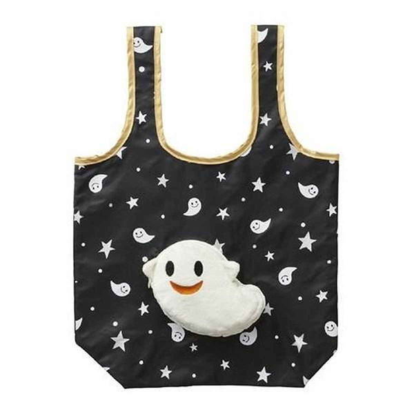 | 商品の特徴 | 使わないときはおばけ型のポーチの中にコンパクトに収納できるトートバッグです。ポーチ部分はトートバッグと一体になっていて、使用時にはおばけ型のポケットになります。使用時には笑顔、収納時には眠った顔になるおばけがとってもかわいい♪ | ||
