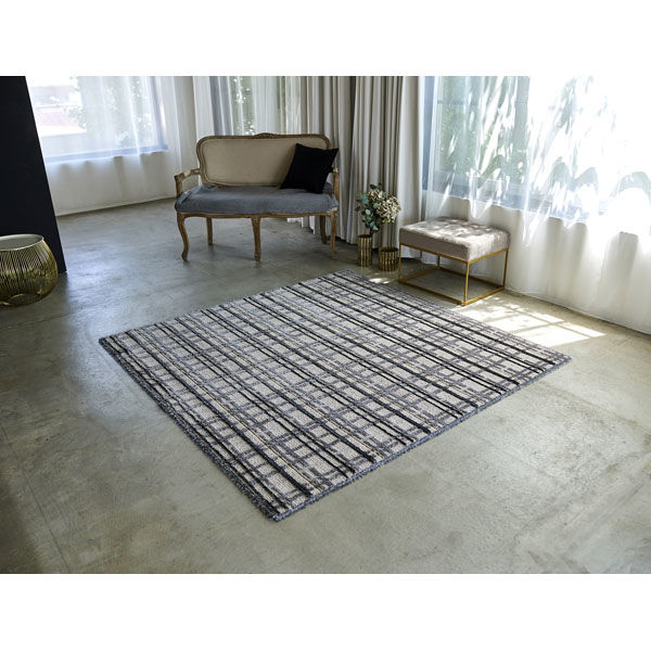 レーヨン、ナイロン、ラメを取り入れたきらっと光る華やかさのあるラグ。