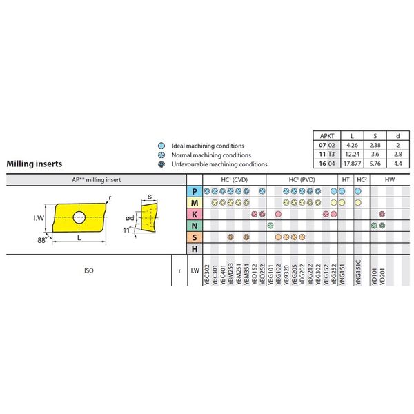 | 商品の特徴 | ●EMP刃先交換式エンドミル用インサート●仕上PF/中仕上PM/粗PR/アルミ用LH●鋼材用YBC/鋳鉄用YBD/ステンレス用YBM/PVDコート汎用YBG●2コーナー仕様 | ||